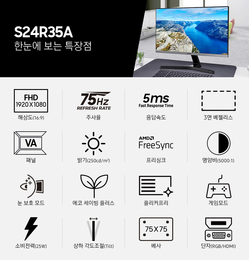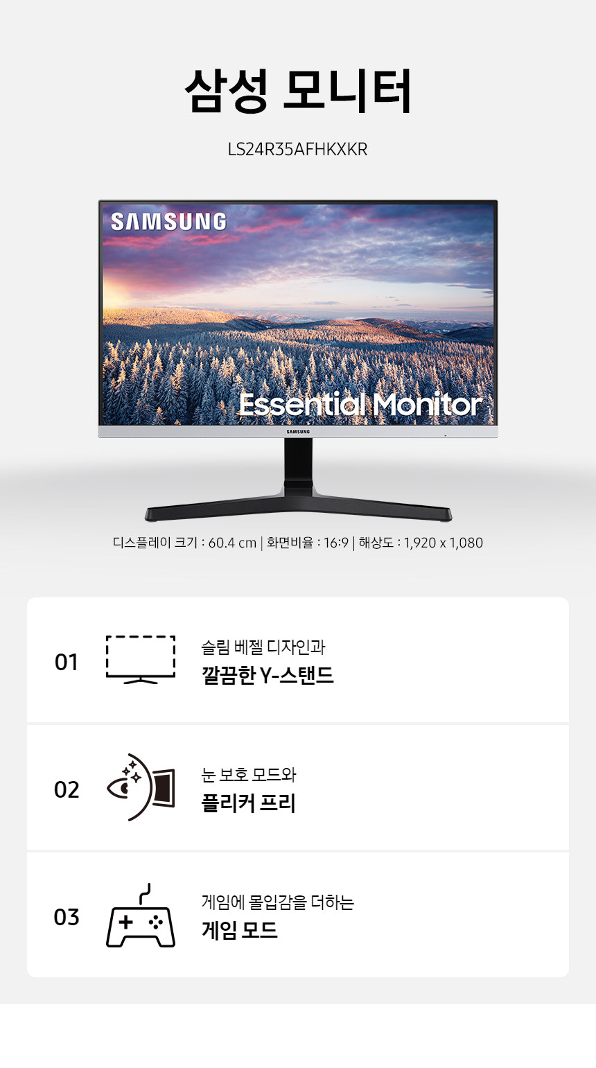 삼성 LED 모니터 광시야각 슬림베젤 24인치 - [이월상품]
